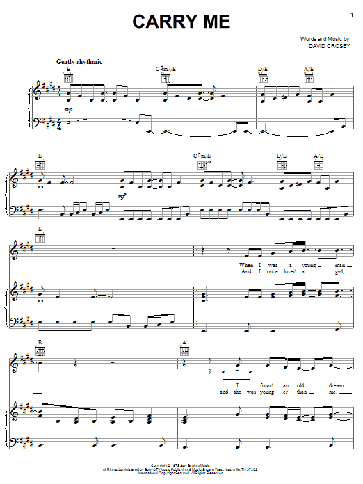 Download or print Crosby, Stills & Nash Carry Me sheet music, chords and digital score arranged for Guitar Tab (Single Guitar). This Pop score includes 10 page(s).