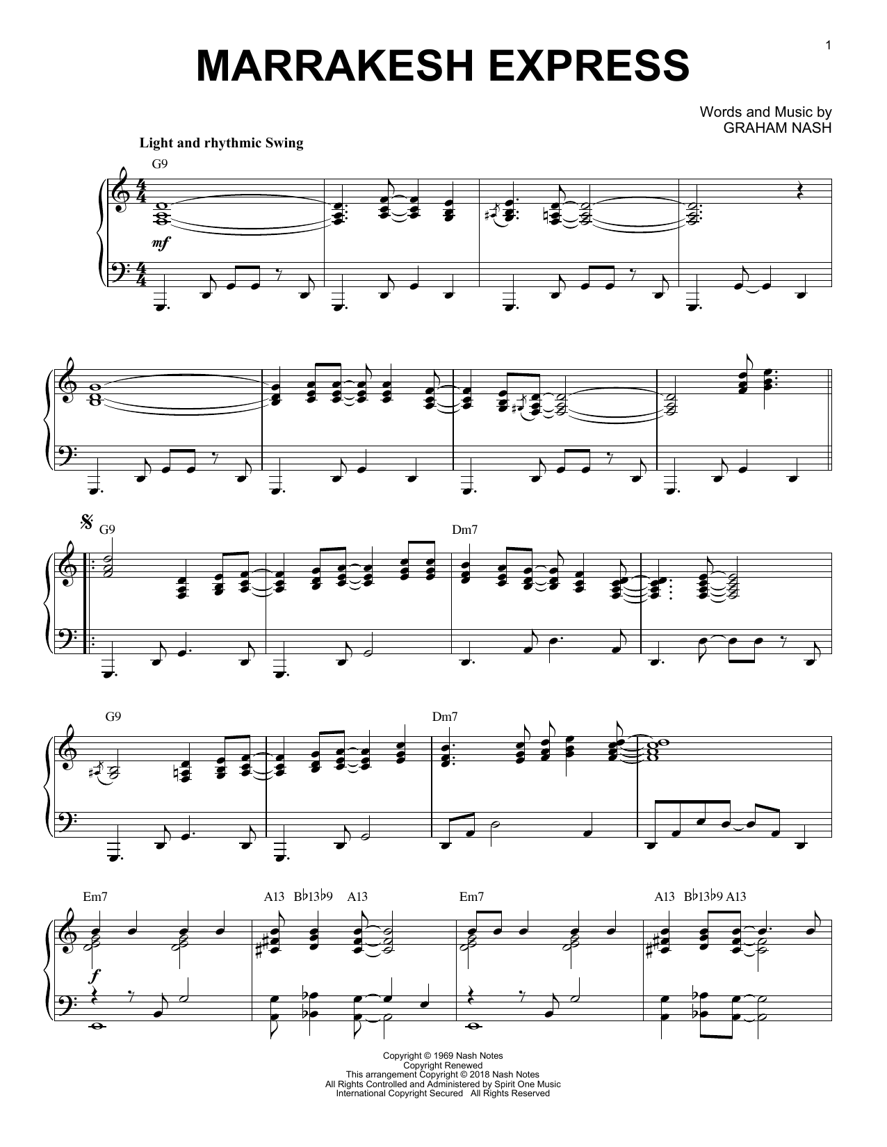Download or print Crosby, Stills & Nash Marrakesh Express [Jazz version] sheet music, chords and digital score arranged for Piano Solo. This Pop score includes 4 page(s).