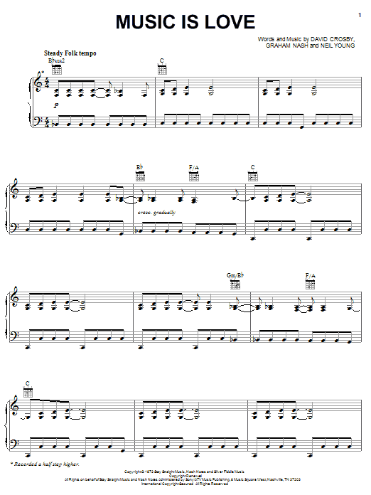 Download or print Crosby, Stills & Nash Music Is Love sheet music, chords and digital score arranged for Guitar Chords/Lyrics. This Pop score includes 3 page(s).