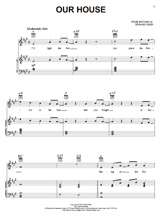 Download or print Crosby, Stills, Nash & Young Our House sheet music, chords and digital score arranged for Guitar Chords/Lyrics. This Folk score includes 2 page(s).