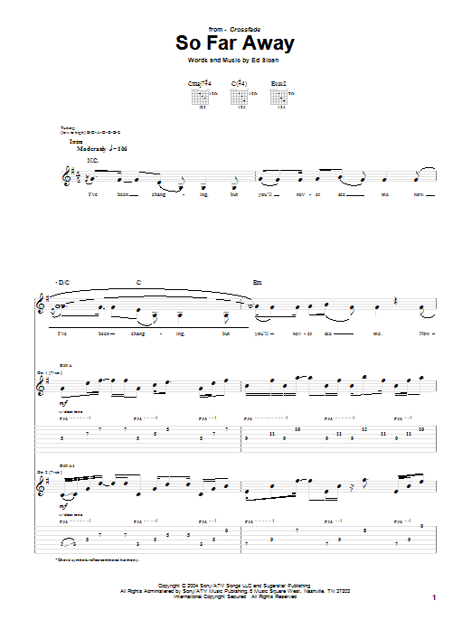 Download or print Crossfade So Far Away sheet music, chords and digital score arranged for Guitar Tab. This Metal score includes 7 page(s).