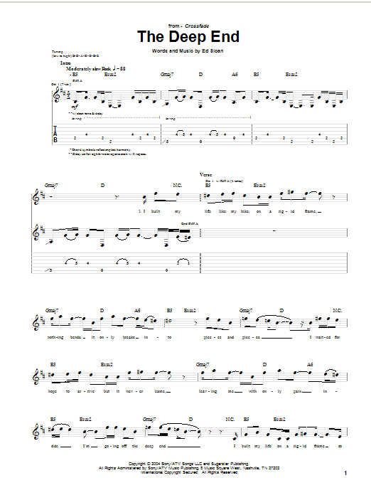 Download or print Crossfade The Deep End sheet music, chords and digital score arranged for Guitar Tab. This Metal score includes 5 page(s).