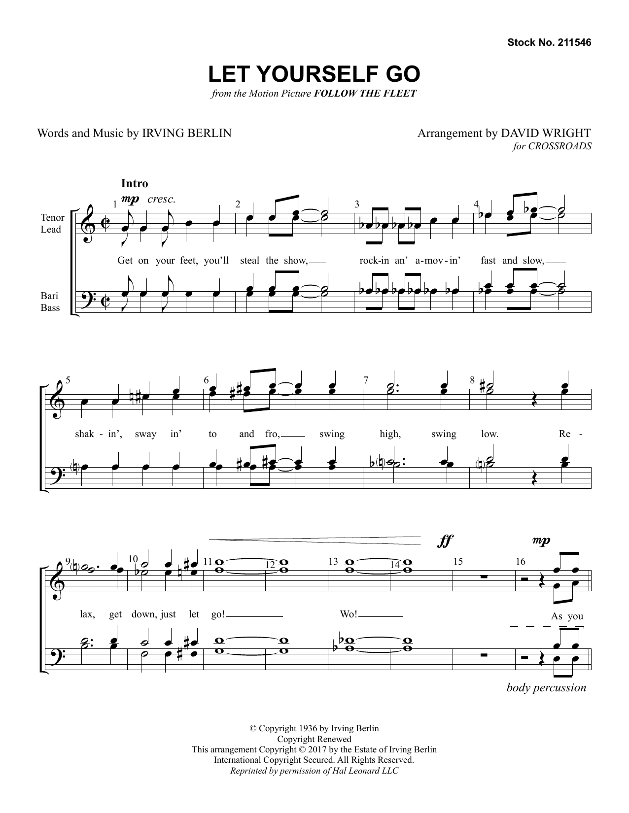 Download or print Crossroads Let Yourself Go (arr. David Wright) sheet music, chords and digital score arranged for TTBB Choir. This Barbershop score includes 7 page(s).