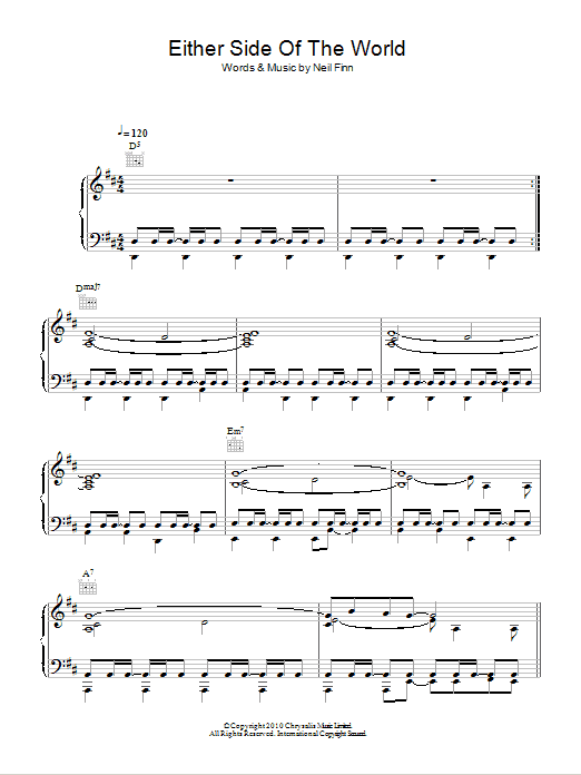 Download or print Crowded House Either Side Of The World sheet music, chords and digital score arranged for Piano, Vocal & Guitar Chords. This Pop score includes 6 page(s).