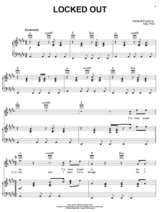 Download or print Crowded House Locked Out sheet music, chords and digital score arranged for Guitar Chords/Lyrics. This Rock score includes 3 page(s).