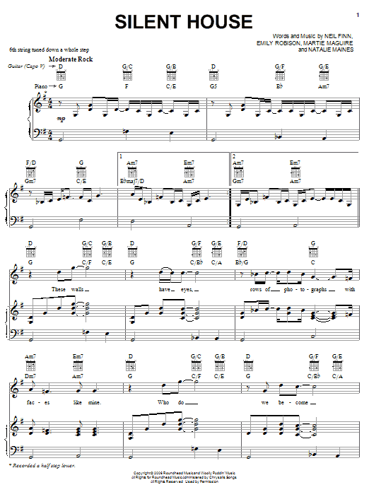 Download or print Crowded House Silent House sheet music, chords and digital score arranged for Piano, Vocal & Guitar Chords (Right-Hand Melody). This Country score includes 8 page(s).