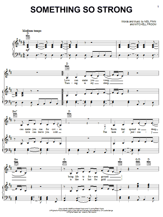 Download or print Crowded House Something So Strong sheet music, chords and digital score arranged for Piano, Vocal & Guitar Chords (Right-Hand Melody). This Pop score includes 4 page(s).