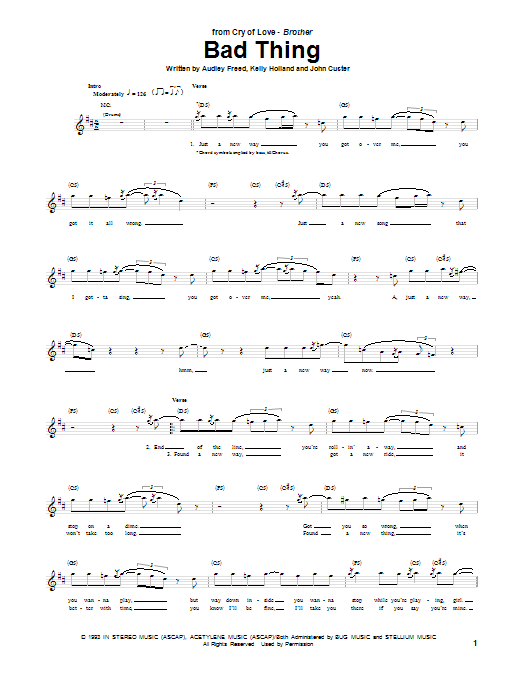 Download or print Cry Of Love Bad Thing sheet music, chords and digital score arranged for Guitar Tab. This Pop score includes 6 page(s).