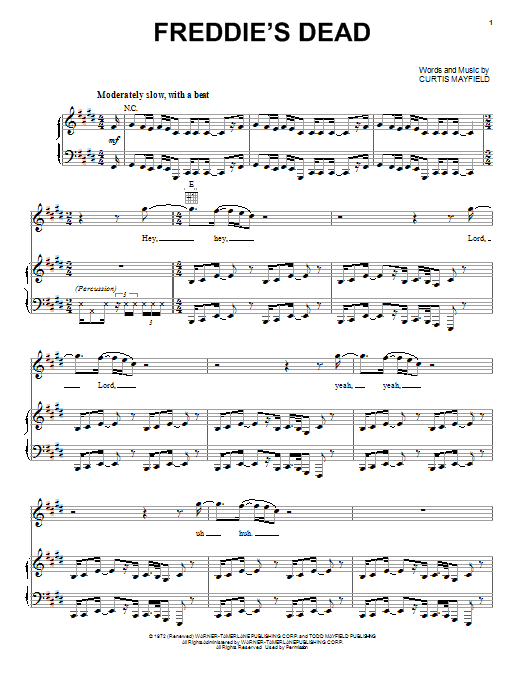 Download or print Curtis Mayfield Freddie's Dead sheet music, chords and digital score arranged for Piano, Vocal & Guitar Chords (Right-Hand Melody). This Pop score includes 11 page(s).