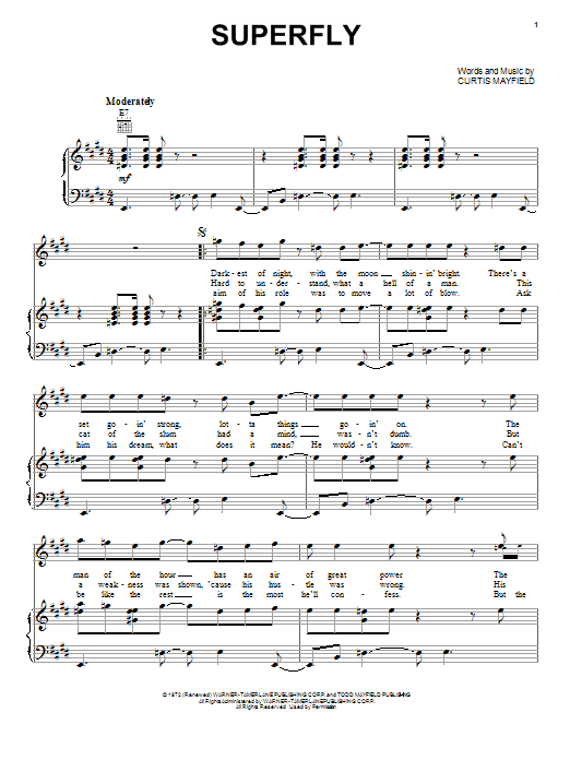 Download or print Curtis Mayfield Superfly sheet music, chords and digital score arranged for Easy Bass Tab. This Pop score includes 2 page(s).
