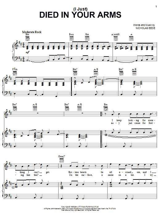 Download or print Cutting Crew (I Just) Died In Your Arms sheet music, chords and digital score arranged for Super Easy Piano. This Pop score includes 2 page(s).