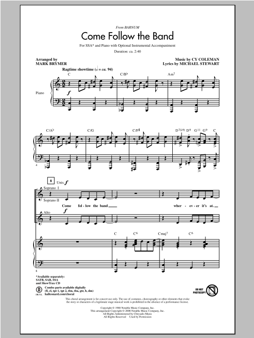 Download or print Mark Brymer Come Follow The Band sheet music, chords and digital score arranged for SSA Choir. This Concert score includes 14 page(s).