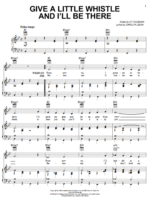 Download or print Cy Coleman Give A Little Whistle And I'll Be There sheet music, chords and digital score arranged for Piano, Vocal & Guitar Chords (Right-Hand Melody). This Musical/Show score includes 6 page(s).