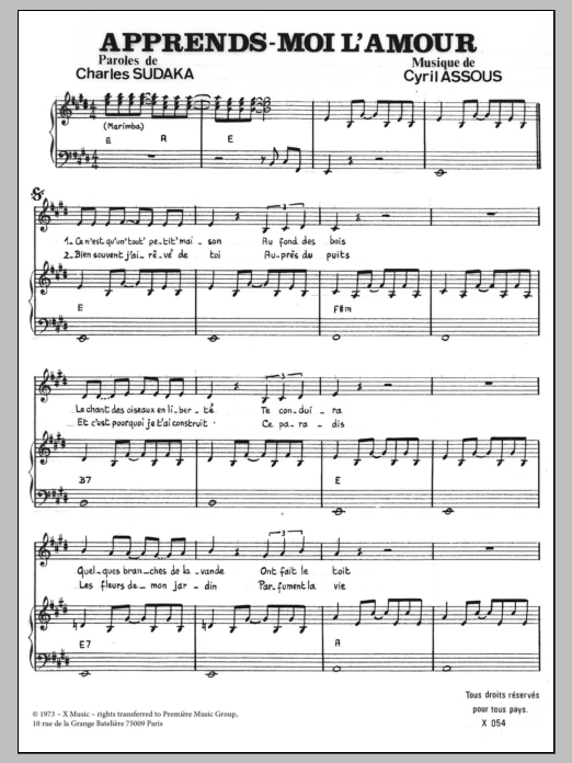 Download or print Cyril Assous APPRENDS MOI L'AMOUR sheet music, chords and digital score arranged for Piano & Vocal. This Pop score includes 2 page(s).