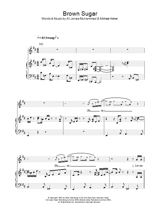 Download or print D'Angelo Brown Sugar sheet music, chords and digital score arranged for Piano, Vocal & Guitar Chords. This Pop score includes 5 page(s).
