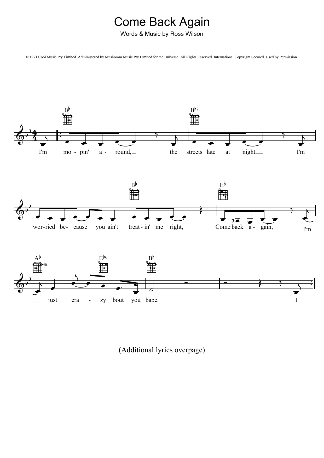 Quick facts Come Back Again about digital sheet music