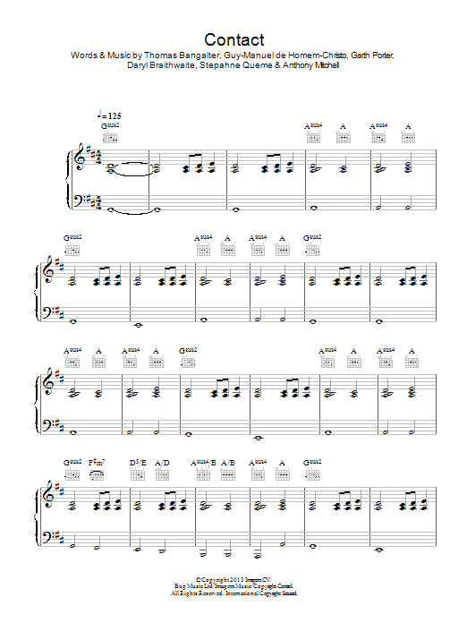 Download or print Daft Punk Contact sheet music, chords and digital score arranged for Piano, Vocal & Guitar Chords. This Pop score includes 4 page(s).