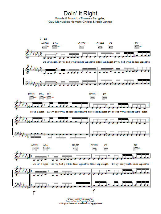 Download or print Daft Punk Doin' It Right sheet music, chords and digital score arranged for Piano, Vocal & Guitar Chords. This Pop score includes 8 page(s).
