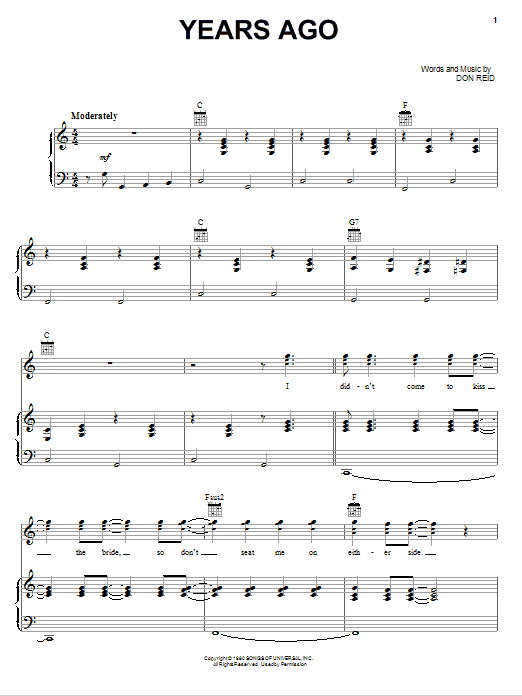 Download or print Dailey & Vincent Years Ago sheet music, chords and digital score arranged for Piano, Vocal & Guitar Chords (Right-Hand Melody). This Country score includes 7 page(s).