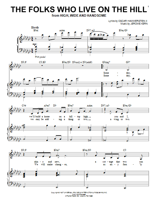 Download or print Dakota Staton The Folks Who Live On The Hill sheet music, chords and digital score arranged for Piano & Vocal. This Standards score includes 4 page(s).
