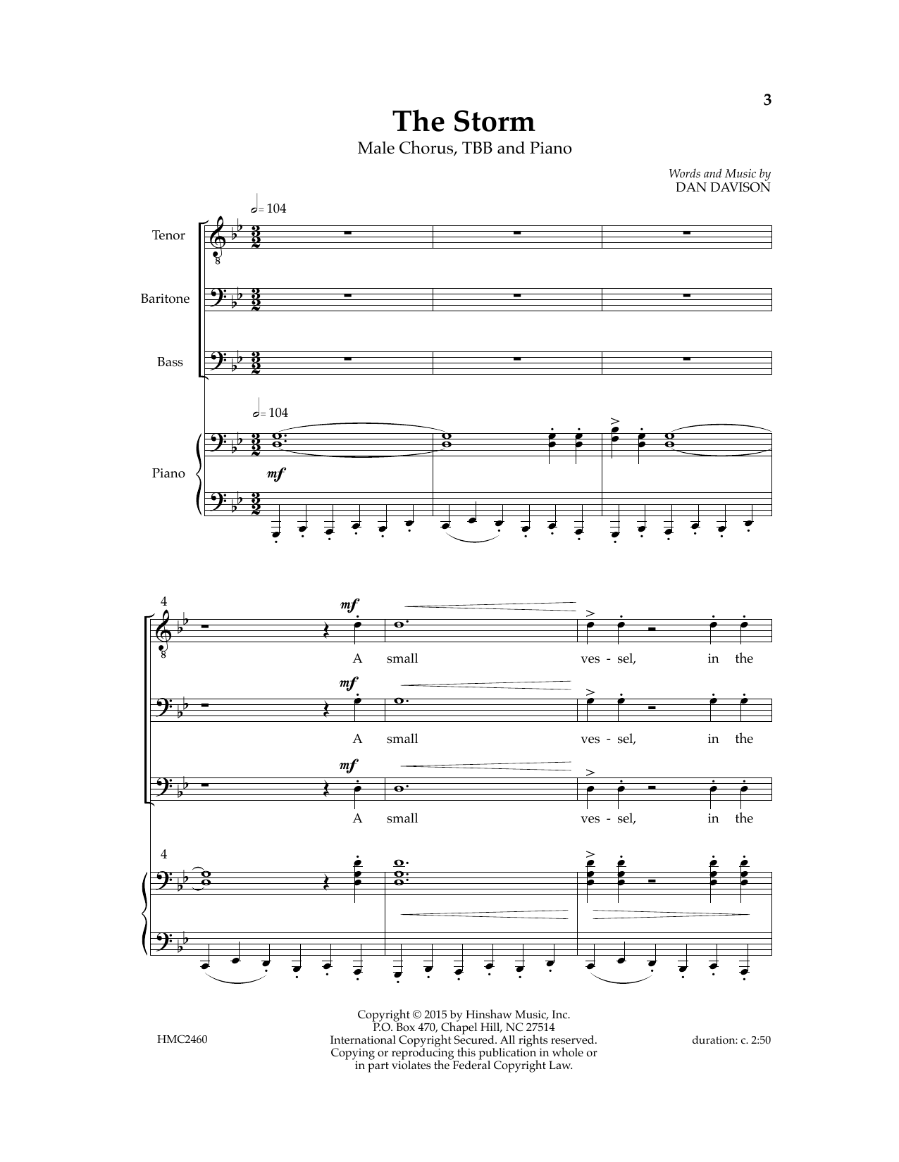 Download or print Dan Davidson The Storm sheet music, chords and digital score arranged for TBB Choir. This Traditional score includes 15 page(s).