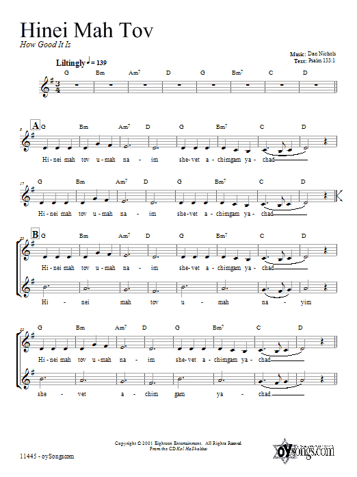 Download or print Dan Nichols Hinei Mah Tov sheet music, chords and digital score arranged for Lead Sheet / Fake Book. This Traditional score includes 3 page(s).