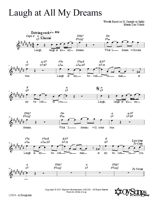 Download or print Dan Nichols Laugh at All My Dreams sheet music, chords and digital score arranged for Lead Sheet / Fake Book. This Traditional score includes 3 page(s).