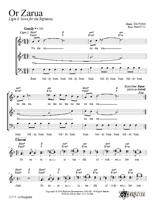 Download or print Dan Nichols Or Zarua sheet music, chords and digital score arranged for Lead Sheet / Fake Book. This Traditional score includes 2 page(s).