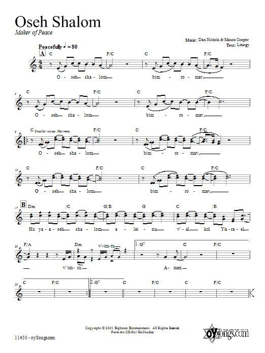 Download or print Dan Nichols Oseh Shalom sheet music, chords and digital score arranged for Lead Sheet / Fake Book. This Traditional score includes 2 page(s).