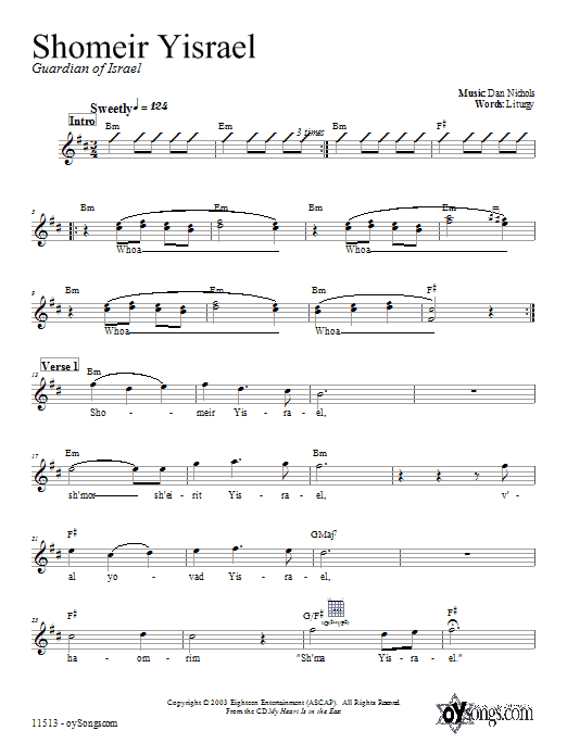 Download or print Dan Nichols Shomeir Yisrael sheet music, chords and digital score arranged for Lead Sheet / Fake Book. This Traditional score includes 3 page(s).