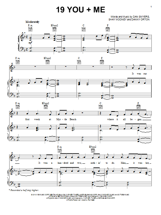 Download or print Dan + Shay 19 You + Me sheet music, chords and digital score arranged for Piano, Vocal & Guitar Chords (Right-Hand Melody). This Pop score includes 9 page(s).