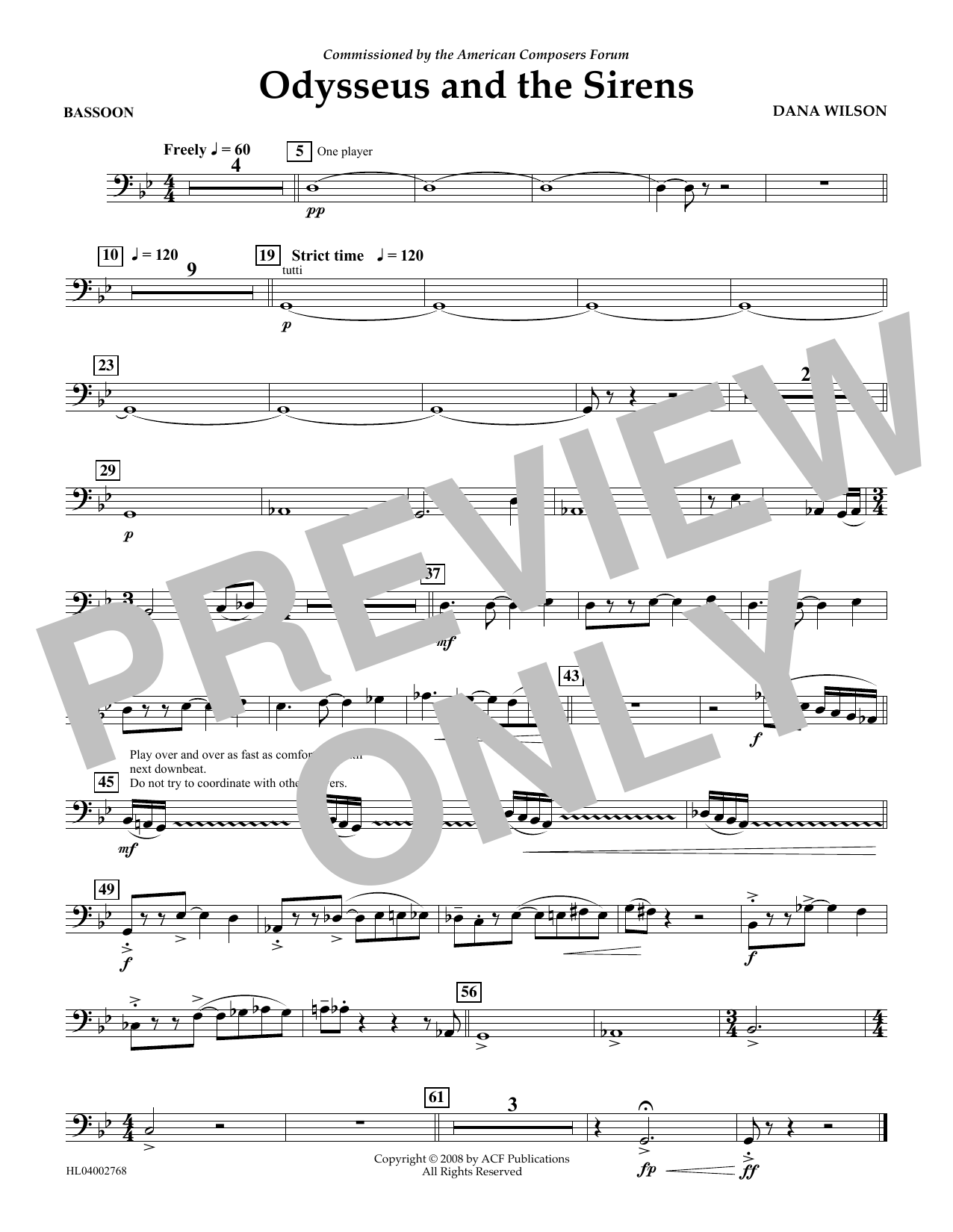 Download or print Dana Wilson Odysseus and the Sirens - Bassoon sheet music, chords and digital score arranged for Concert Band. This Concert score includes 1 page(s).