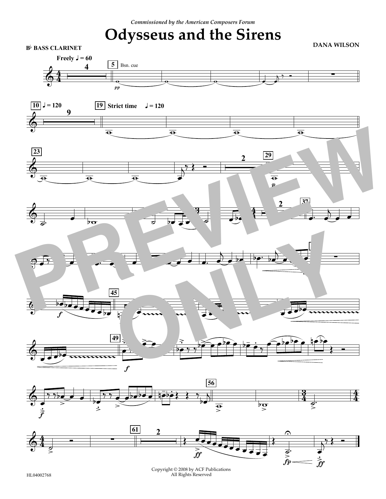 Download or print Dana Wilson Odysseus and the Sirens - Bb Bass Clarinet sheet music, chords and digital score arranged for Concert Band. This Concert score includes 1 page(s).