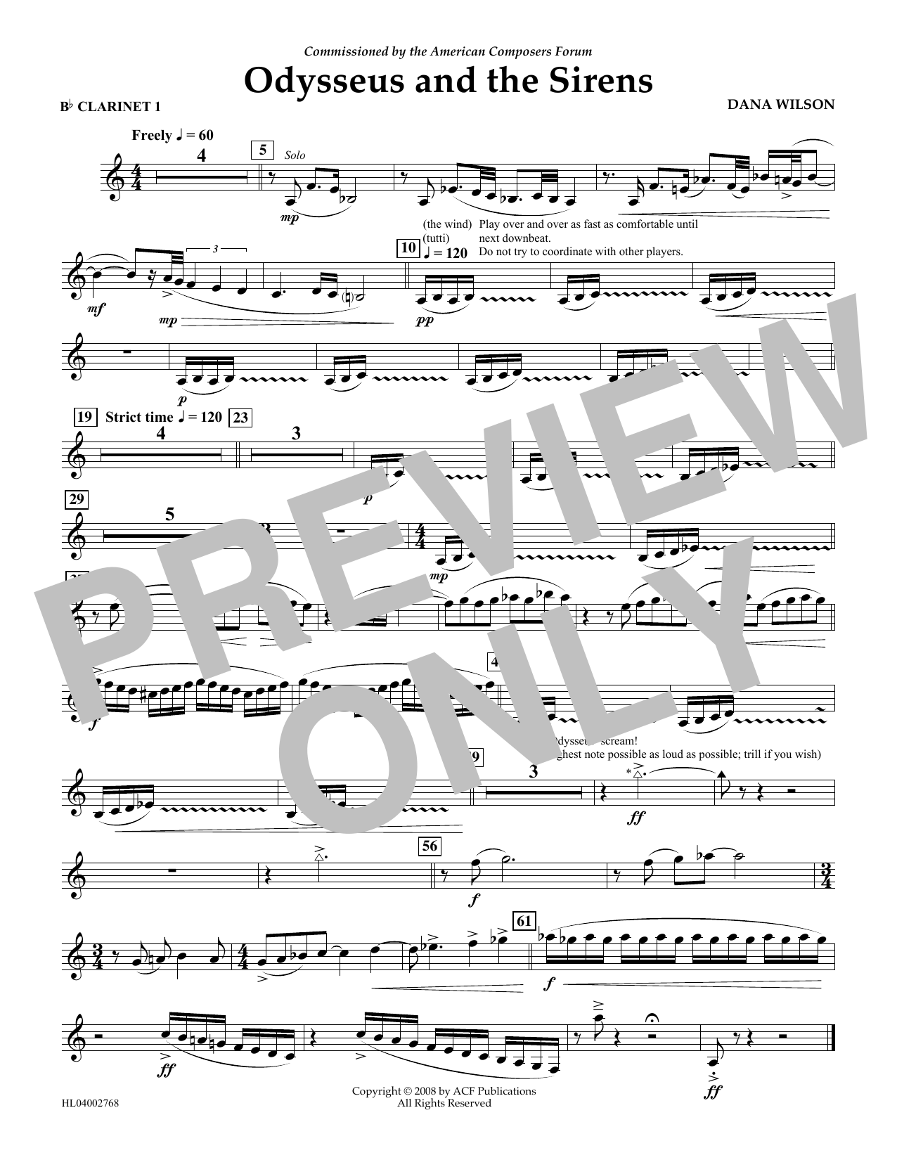 Download or print Dana Wilson Odysseus and the Sirens - Bb Clarinet 1 sheet music, chords and digital score arranged for Concert Band. This Concert score includes 1 page(s).