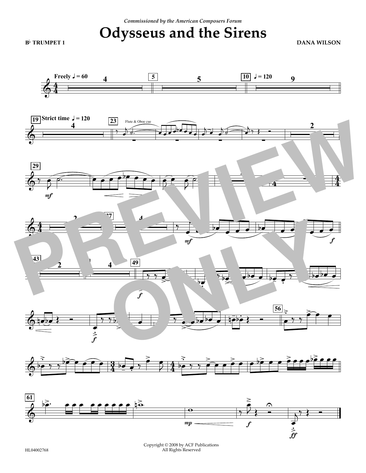 Download or print Dana Wilson Odysseus and the Sirens - Bb Trumpet 1 sheet music, chords and digital score arranged for Concert Band. This Concert score includes 1 page(s).