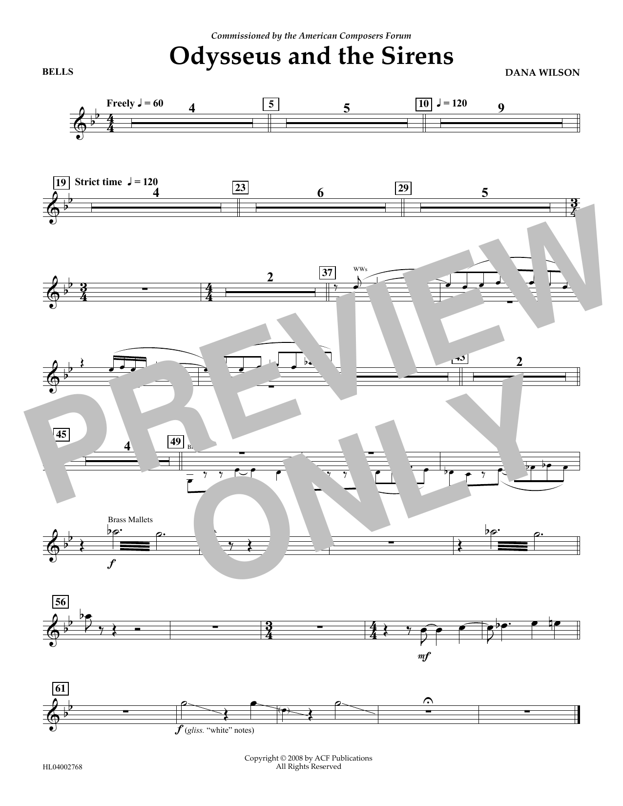 Download or print Dana Wilson Odysseus and the Sirens - Bells sheet music, chords and digital score arranged for Concert Band. This Concert score includes 1 page(s).