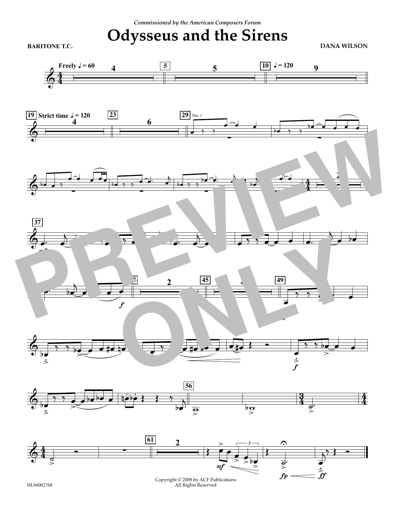 Download or print Dana Wilson Odysseus and the Sirens - Euphonium in Treble Clef sheet music, chords and digital score arranged for Concert Band. This Concert score includes 1 page(s).
