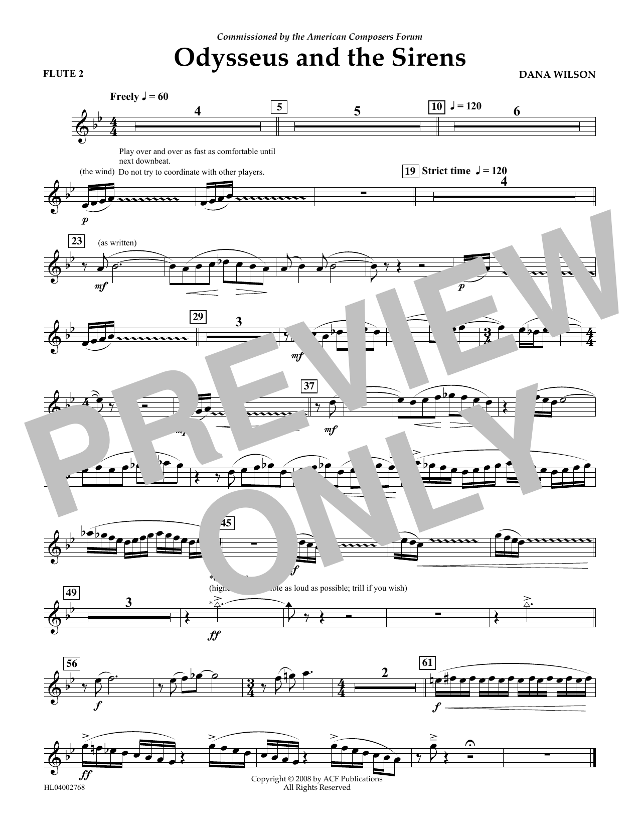 Download or print Dana Wilson Odysseus and the Sirens - Flute 2 sheet music, chords and digital score arranged for Concert Band. This Concert score includes 1 page(s).