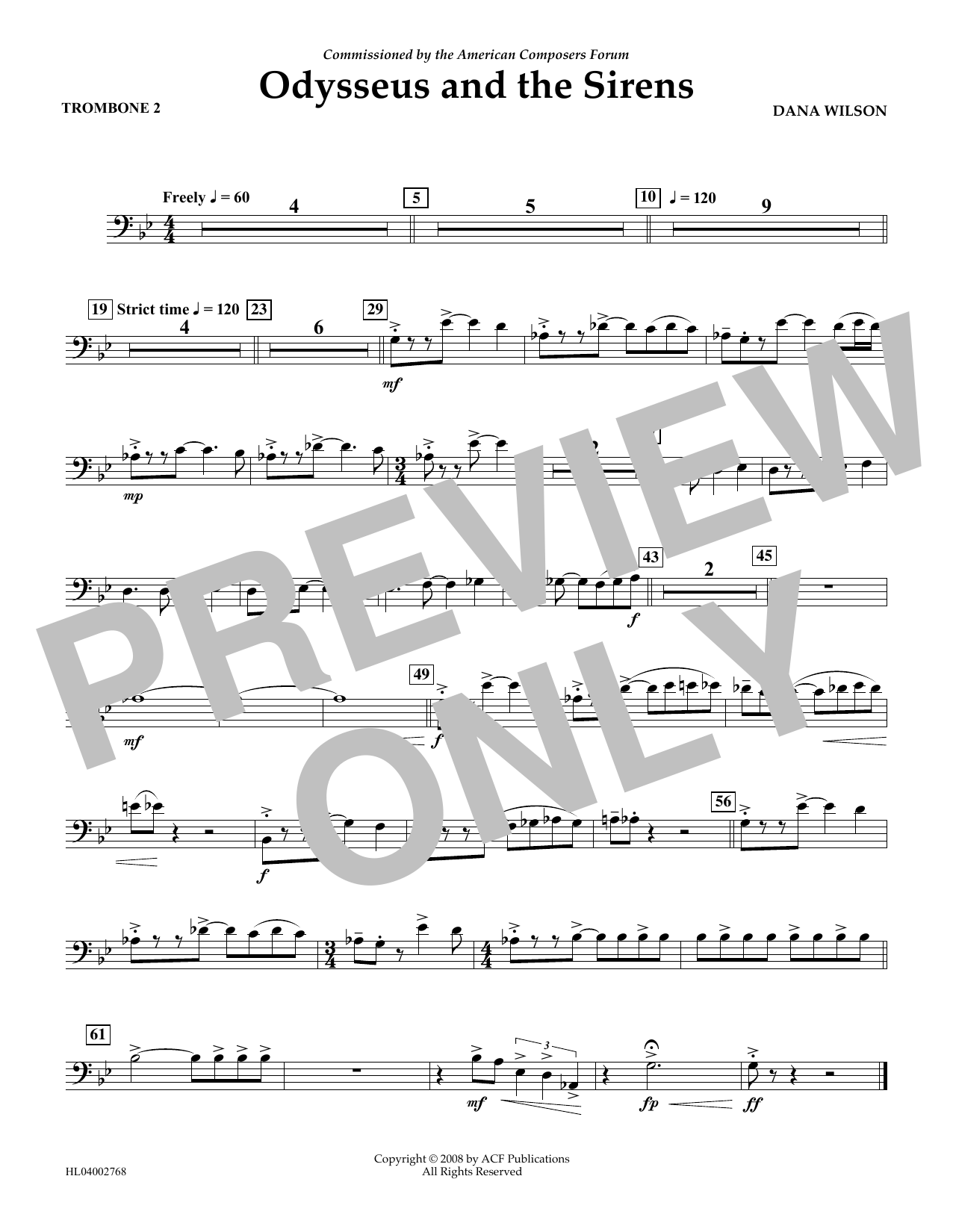 Download or print Dana Wilson Odysseus and the Sirens - Trombone 2 sheet music, chords and digital score arranged for Concert Band. This Concert score includes 1 page(s).