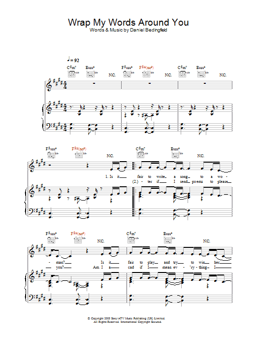 Download or print Daniel Bedingfield Wrap My Words Around You sheet music, chords and digital score arranged for Piano Chords/Lyrics. This Pop score includes 2 page(s).