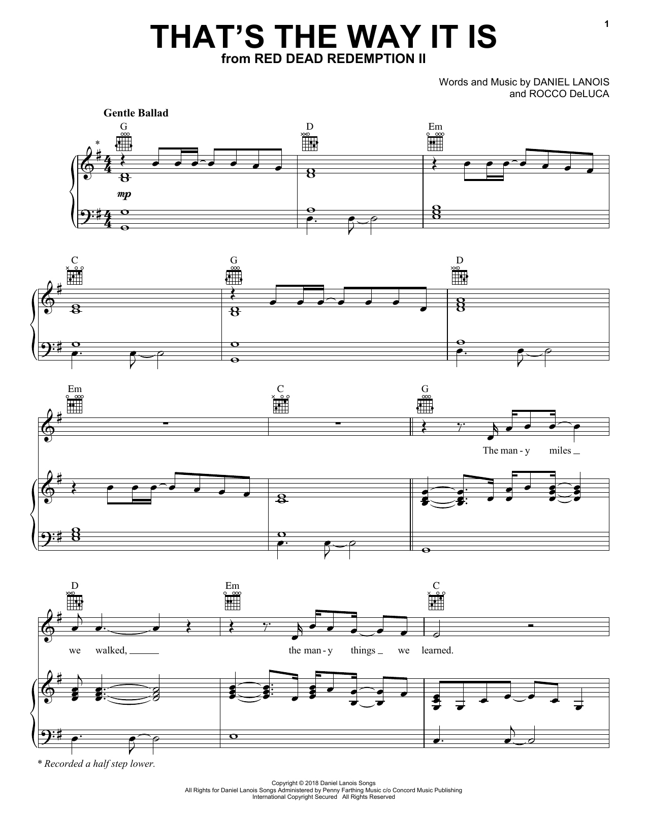 Download or print Daniel Lanois That's The Way It Is (from Red Dead Redemption 2) sheet music, chords and digital score arranged for Piano, Vocal & Guitar Chords (Right-Hand Melody). This Video Game score includes 4 page(s).