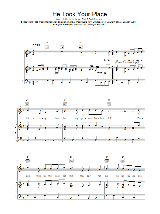 Download or print Daniel O'Donnell He Took Your Place sheet music, chords and digital score arranged for Piano, Vocal & Guitar Chords. This Traditional score includes 4 page(s).