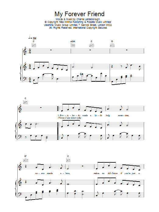 Download or print Daniel O'Donnell My Forever Friend sheet music, chords and digital score arranged for Piano, Vocal & Guitar Chords. This Traditional score includes 6 page(s).