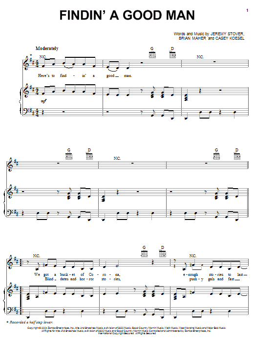 Download or print Danielle Peck Findin' A Good Man sheet music, chords and digital score arranged for Piano, Vocal & Guitar Chords (Right-Hand Melody). This Country score includes 5 page(s).