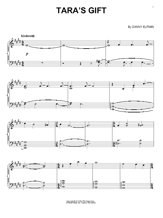 Download or print Danny Elfman Tara's Gift sheet music, chords and digital score arranged for Piano Solo. This Children score includes 3 page(s).