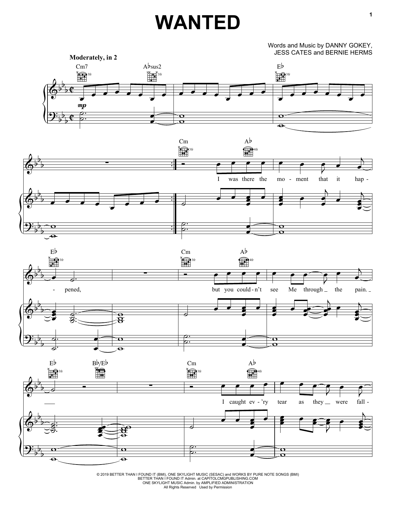 Download or print Danny Gokey Wanted sheet music, chords and digital score arranged for Piano, Vocal & Guitar Chords (Right-Hand Melody). This Christian score includes 8 page(s).