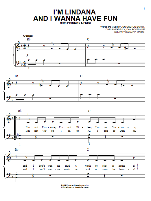 Download or print Danny Jacob I'm Lindana And I Wanna Have Fun sheet music, chords and digital score arranged for Easy Piano. This Children score includes 2 page(s).