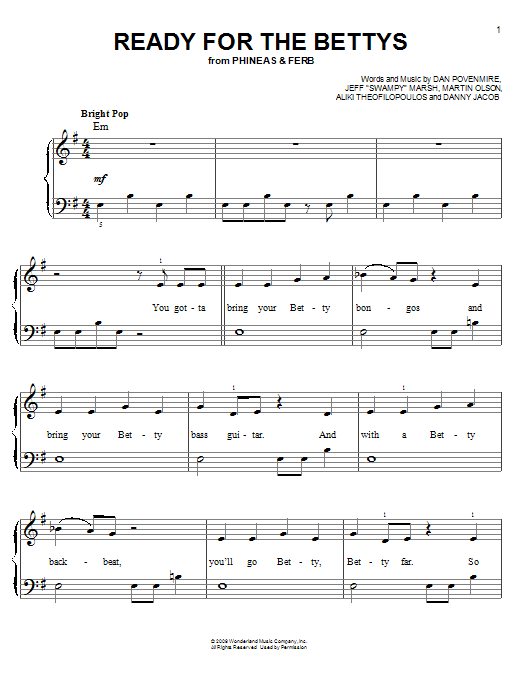 Download or print Danny Jacob Ready For The Bettys sheet music, chords and digital score arranged for Easy Piano. This Children score includes 3 page(s).