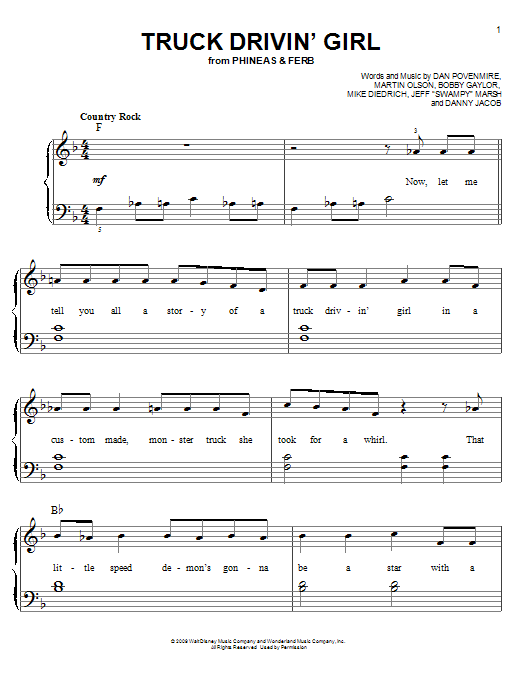 Download or print Danny Jacob Truck Drivin' Girl sheet music, chords and digital score arranged for Easy Piano. This Children score includes 3 page(s).