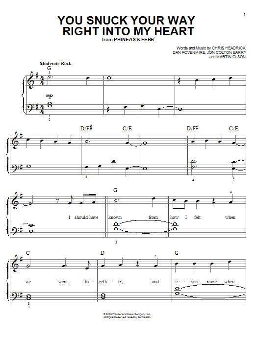 Download or print Danny Jacob You Snuck Your Way Right Into My Heart sheet music, chords and digital score arranged for Easy Piano. This Children score includes 4 page(s).